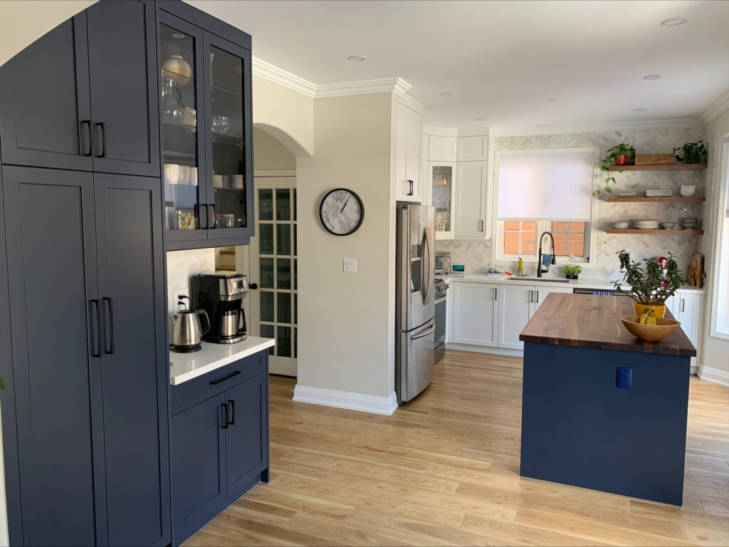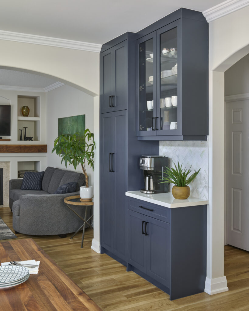 A standout feature of the redesign is the custom coffee bar and pantry, cleverly tucked away to maximize storage while keeping essentials organized and easily accessible. This addition streamlines the morning routine and enhances the kitchen’s overall functionality without compromising visual appeal.